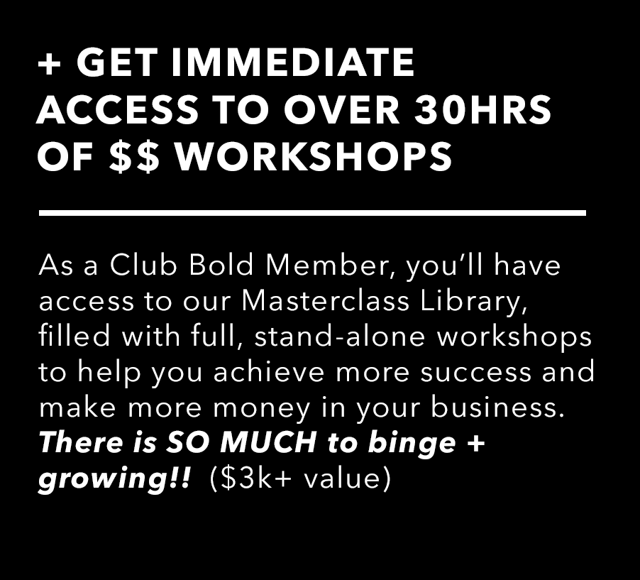 Club Bold is a membership for the female entrepreneur at any level. You can be a veteran 7 figure+ CEO, or merely considering taking a leap into starting your side hustle or business.